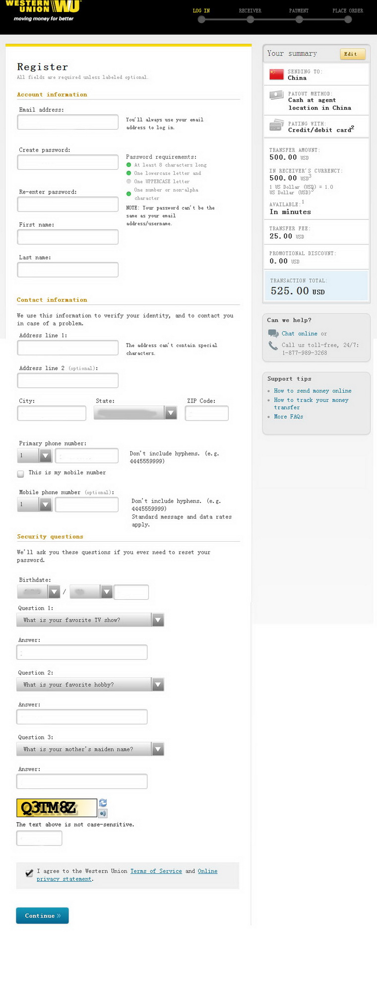 Step 7:input the payment information to complete,and you will get an email from western union