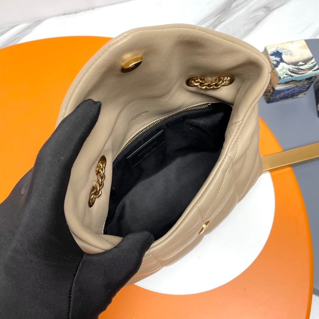 Beige YSL Toy Puffer in lambskin