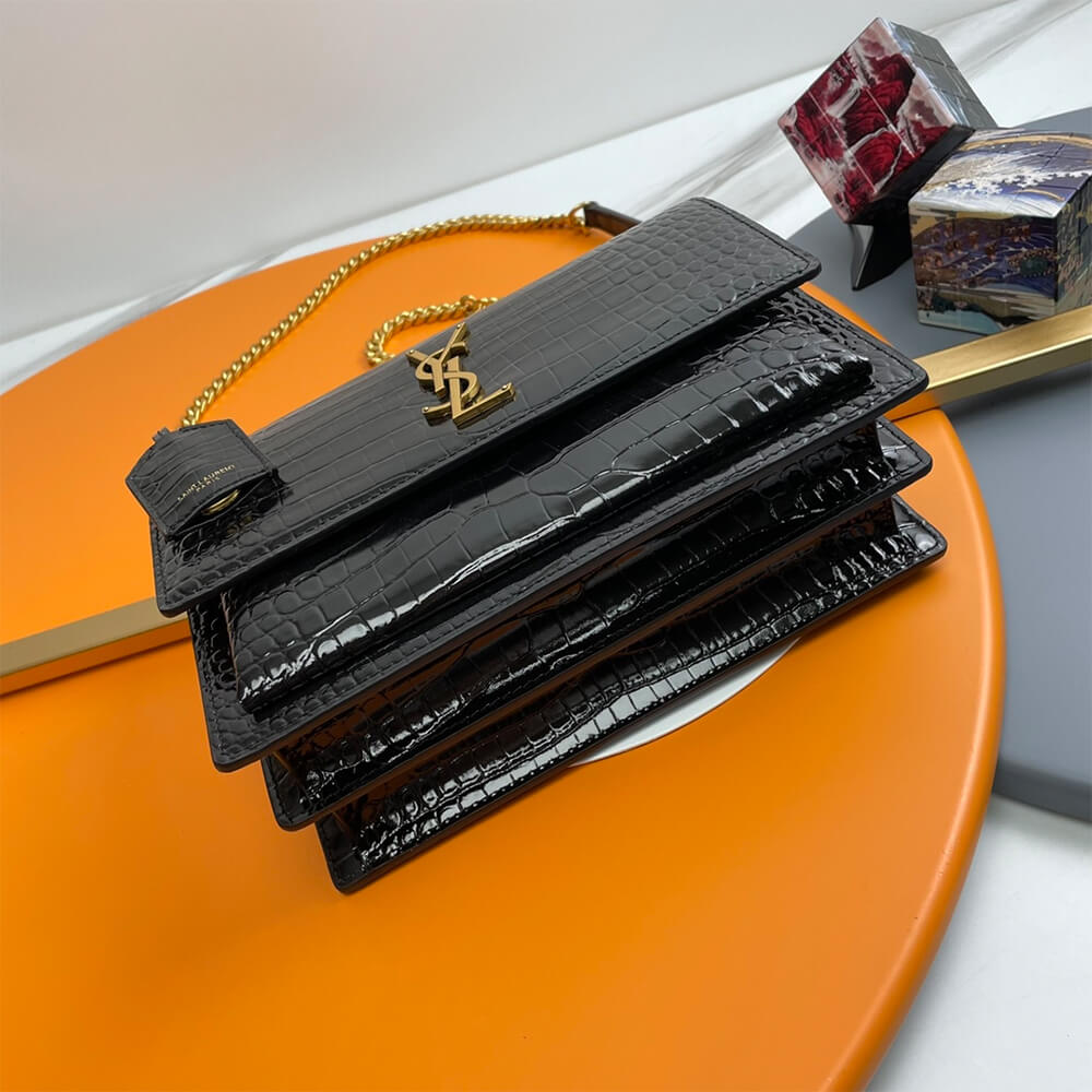 black YSL Crocodile-embossed leather SUNSET Medium
