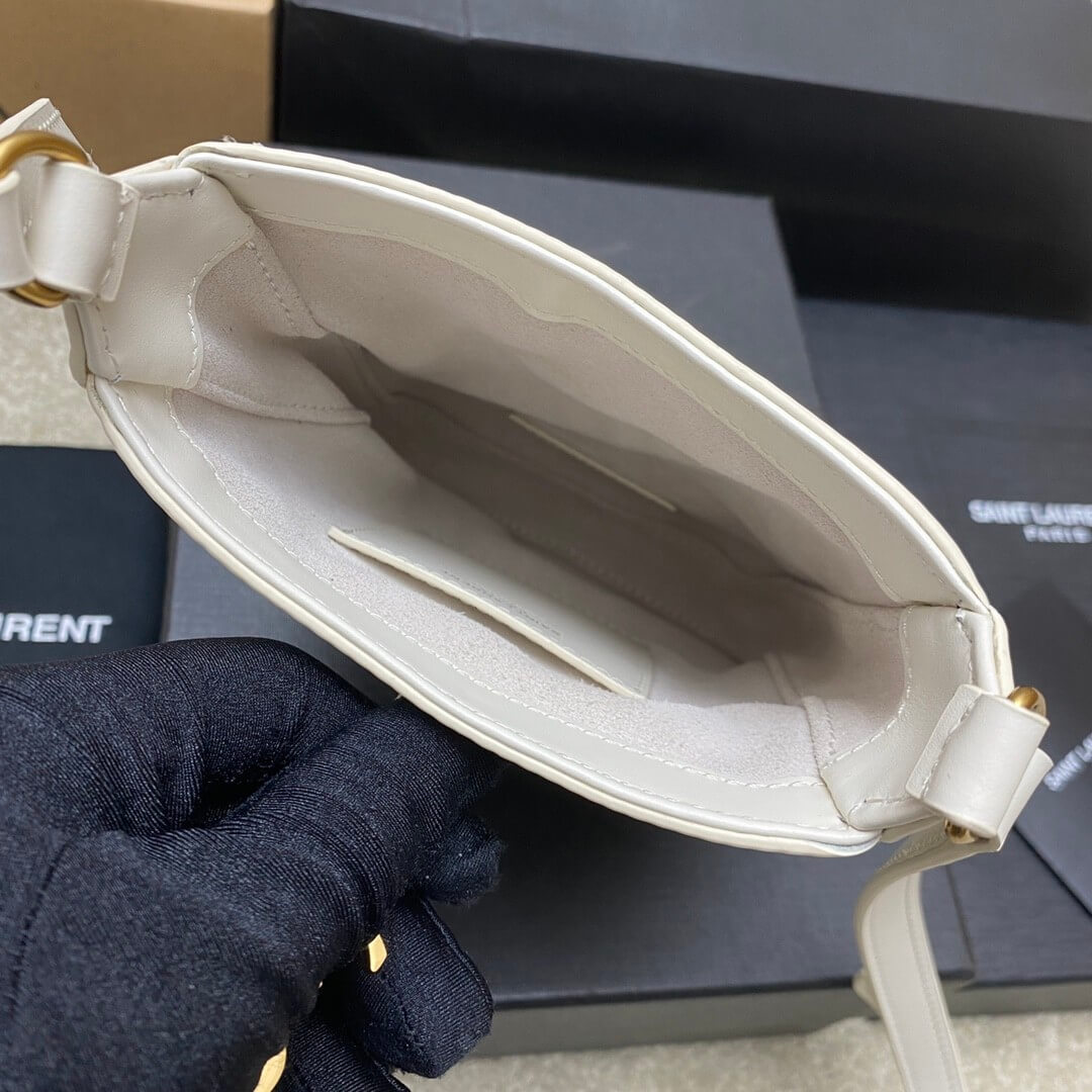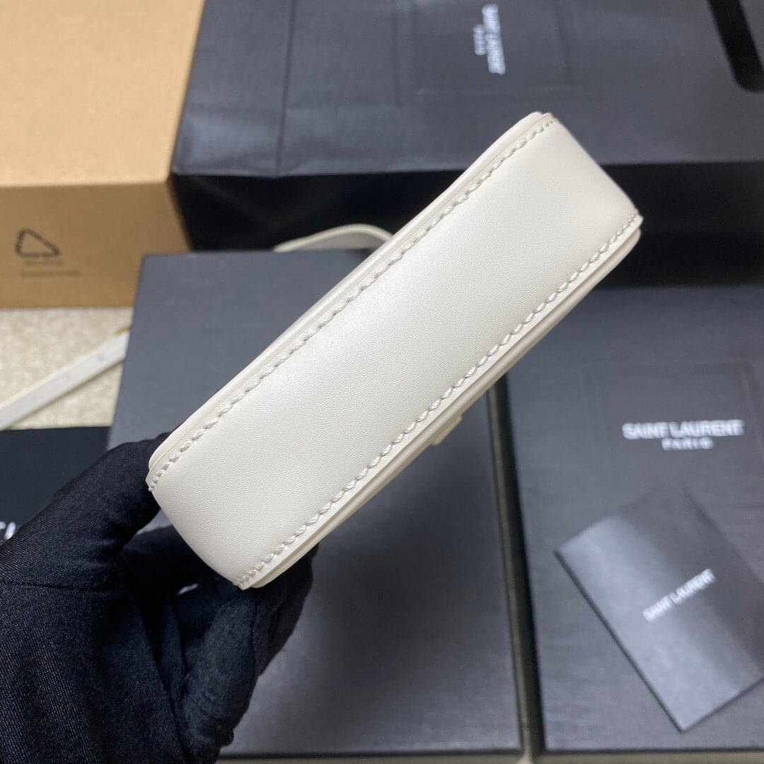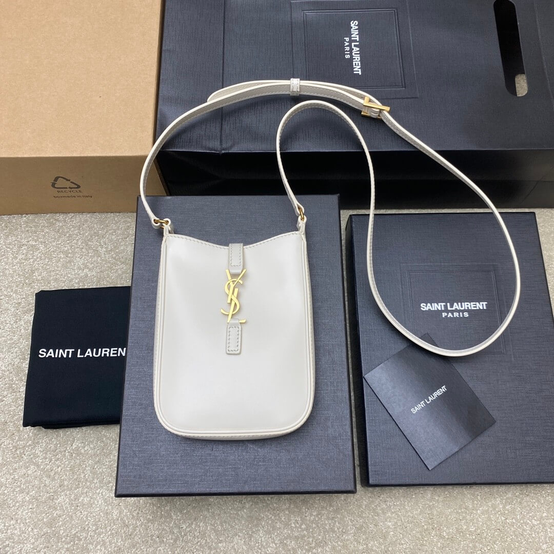 White YSL Le 5 A 7 mini vertical bag in shiny leather