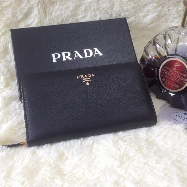Prada Grainy Leather Large Zippy Wallets Black